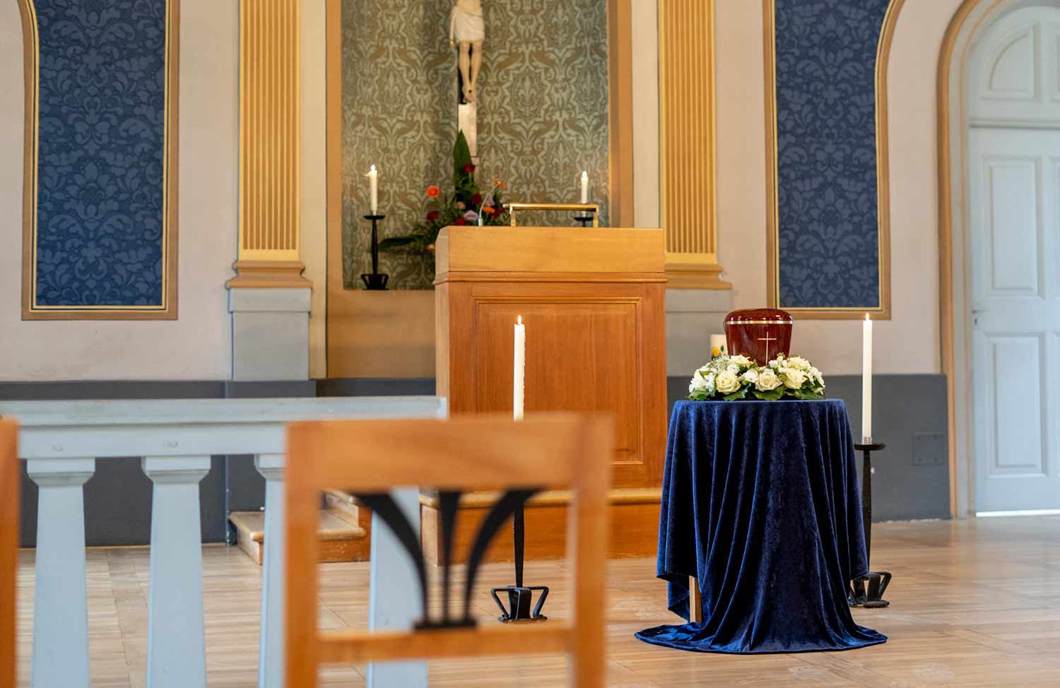 Eine individuelle Trauerfeier ist für die Trauerbewältigung sehr wichtig. Deshalb gestalten wir jeden Abschied als besonders persönliche Erinnerung an den verstorbenen Menschen. Dabei richten wir uns nach Ihren Wünschen. Organisatorisches sowie anfallende Formalitäten nehmen wir Ihnen gerne ab, um Ihnen mehr Zeit und Raum für Ihre Trauer und Ihre individuellen Entscheidungen zu ermöglichen.